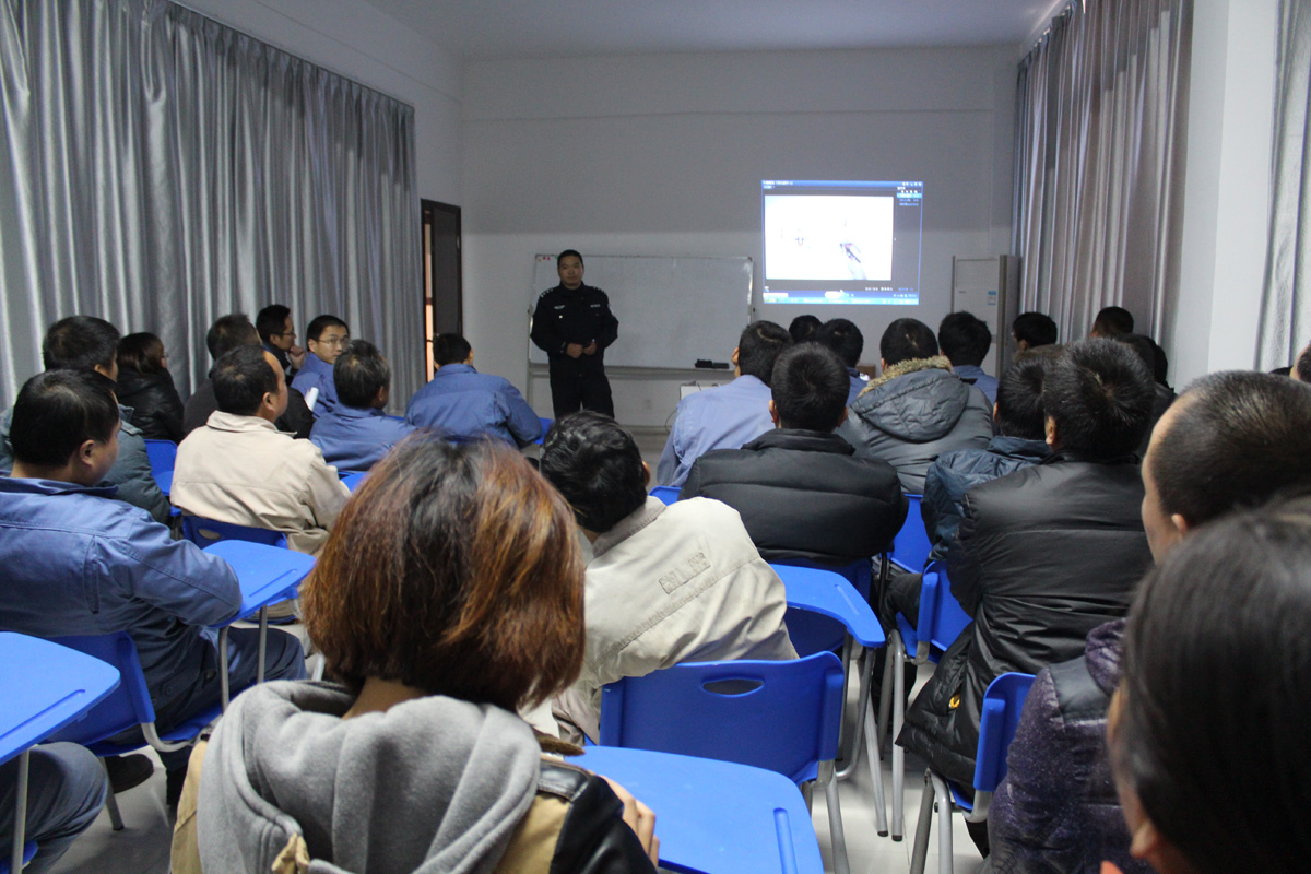 朱警官的讲课,有视频说法,有法规讲解,图文并茂,生动实用,所有听讲的员工听得也非常认真。