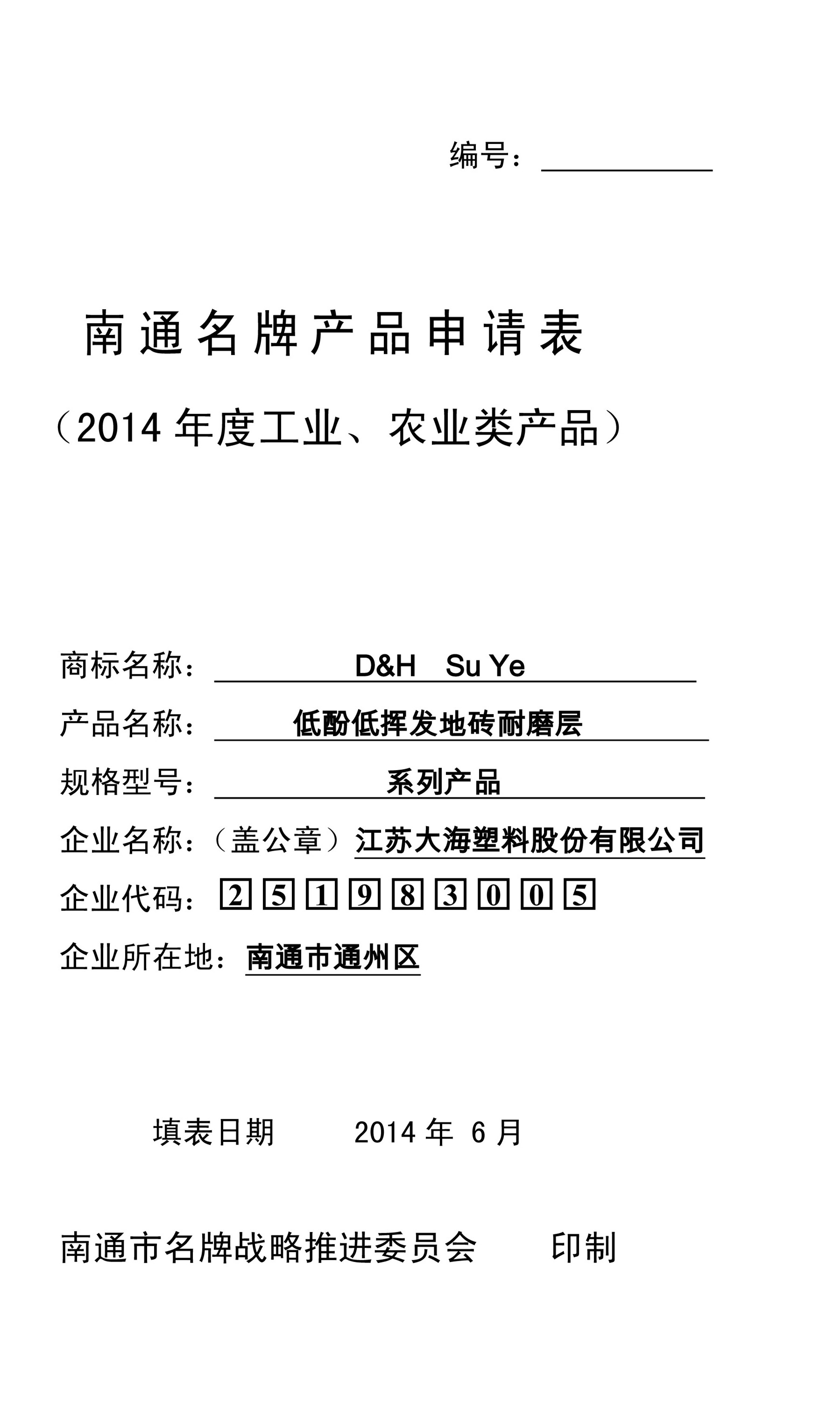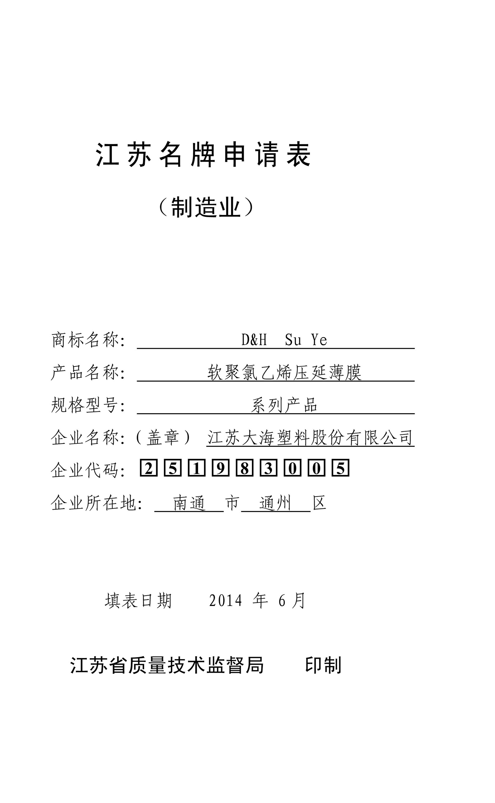 7月中旬,公司将“软聚氯乙烯压延薄膜”产品申报 “江苏名牌产品”,“低酚低挥发地砖耐磨层”产品申报“南通名牌产品”,目前申报材料均已报送至区质监局,并完成网上申报工作。其中,“软聚氯乙烯压延薄膜”产品去年已经申报南通名牌产品,并获批。 此次申报,得到了通州区质监局刘副局长、赵辉科长、陶慧敏科长的多次指点,在公司财务等部门的大力协助下,顺利地完成了申报工作。如果申报成功,名牌的荣誉将对企业产品的销售起到“催化剂”的作用,公司也将分别得到20万元和4万元奖励资金。