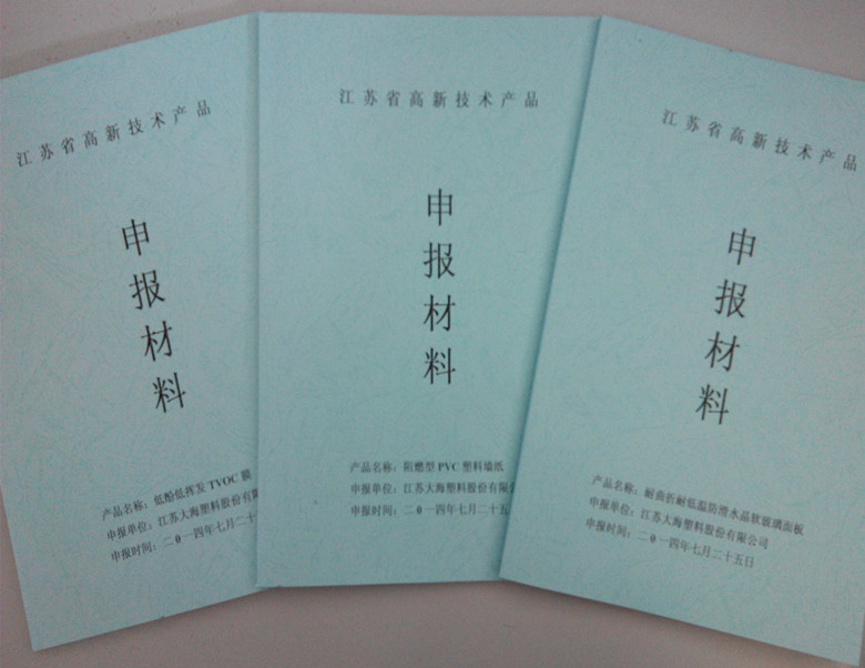 7月28日,公司分别将“低酚低挥发TVOC膜”、“阻燃型PVC塑料墙纸”和“耐曲折耐低温防滑水晶软玻璃面板”申报了高新技术产品。